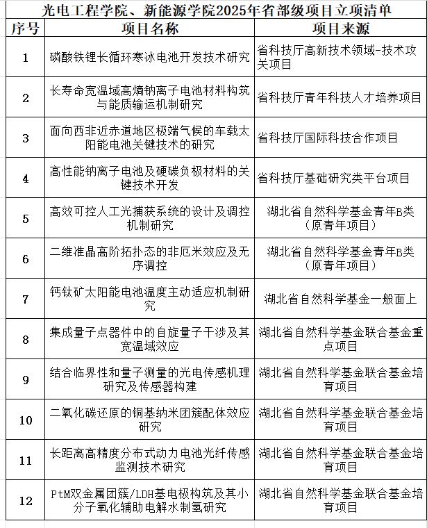 近日,湖北省科学技术厅公布了《省科技厅关于下达2025年度第一批省级科技计划项目的通知》,光电工程学院、william英国中文在此次申报中成绩突出,获批青年科技人才培养项目1项,国际科技合作项目1项,基础研究类平台项目1项,另与企业联合申报获批高新技术领域-技术攻关项目1项,立项资助经费达151万元。2025年以来,学院共获批省自然科学基金、省级科技计划项目各类省部级项目共计12项,立项资助经费达241万元。