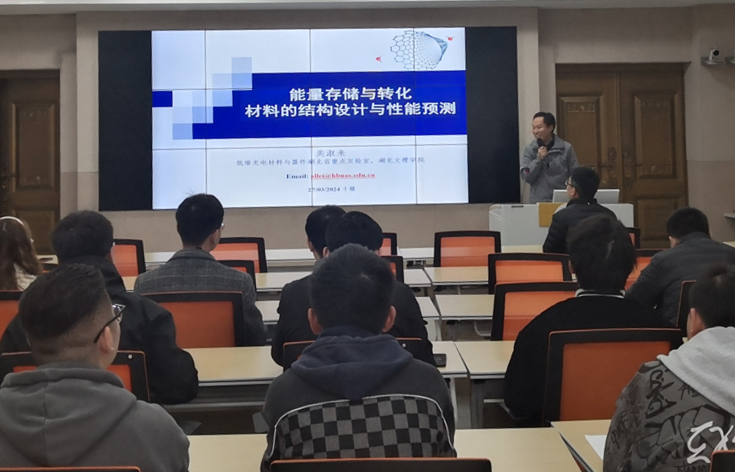 为了营造良好的学术氛围,加深高校之间的学术交流。3月27日下午,数理与光电工程学院在教师发展中心1305教室顺利开展了“格致论坛”第30、31讲活动。此次“格致论坛”活动邀请到湖北文理学院的类淑来教授、徐可副教授作为主讲人,分别进行题为“能量存储与转化材料的结构设计与性能预测”、“二维铁磁半导体VI3中的基态磁构型和磁各向异性起源的理论研究”的学术报告。此次“格致论坛”由数理与光电工程学院张传坤副院长主持,学院学术科研骨干教师、学院全体研究生参加了此次论坛。