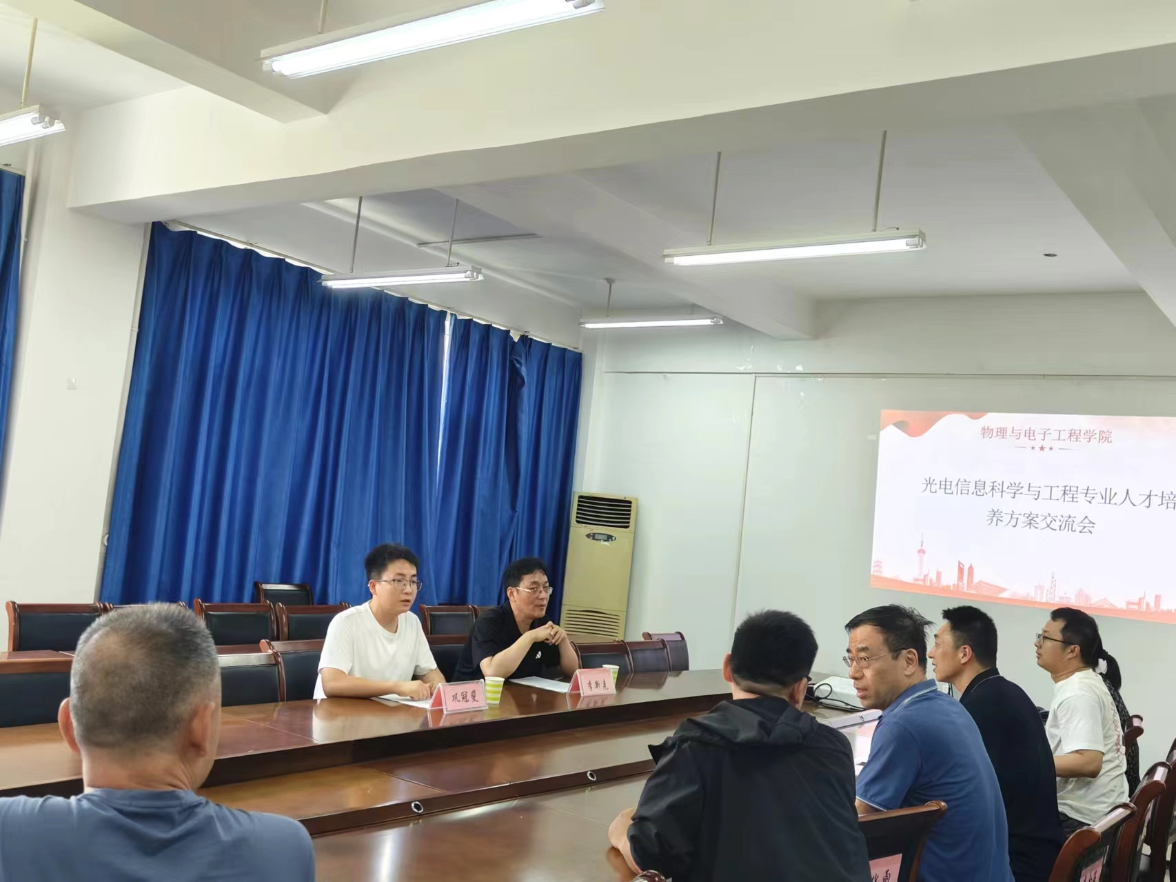为了拓宽研究生的招生渠道,进一步提升学院人才培养质量,数理与光电工程学院光电科学与技术系副主任李新克老师及青年教师巩冠斐一行,于6月13日下午前往郑州师范学院物理与电子工程学院开展数理与光电工程学院2025学年研究生招生宣讲及本科生培养方案交流讨论活动。