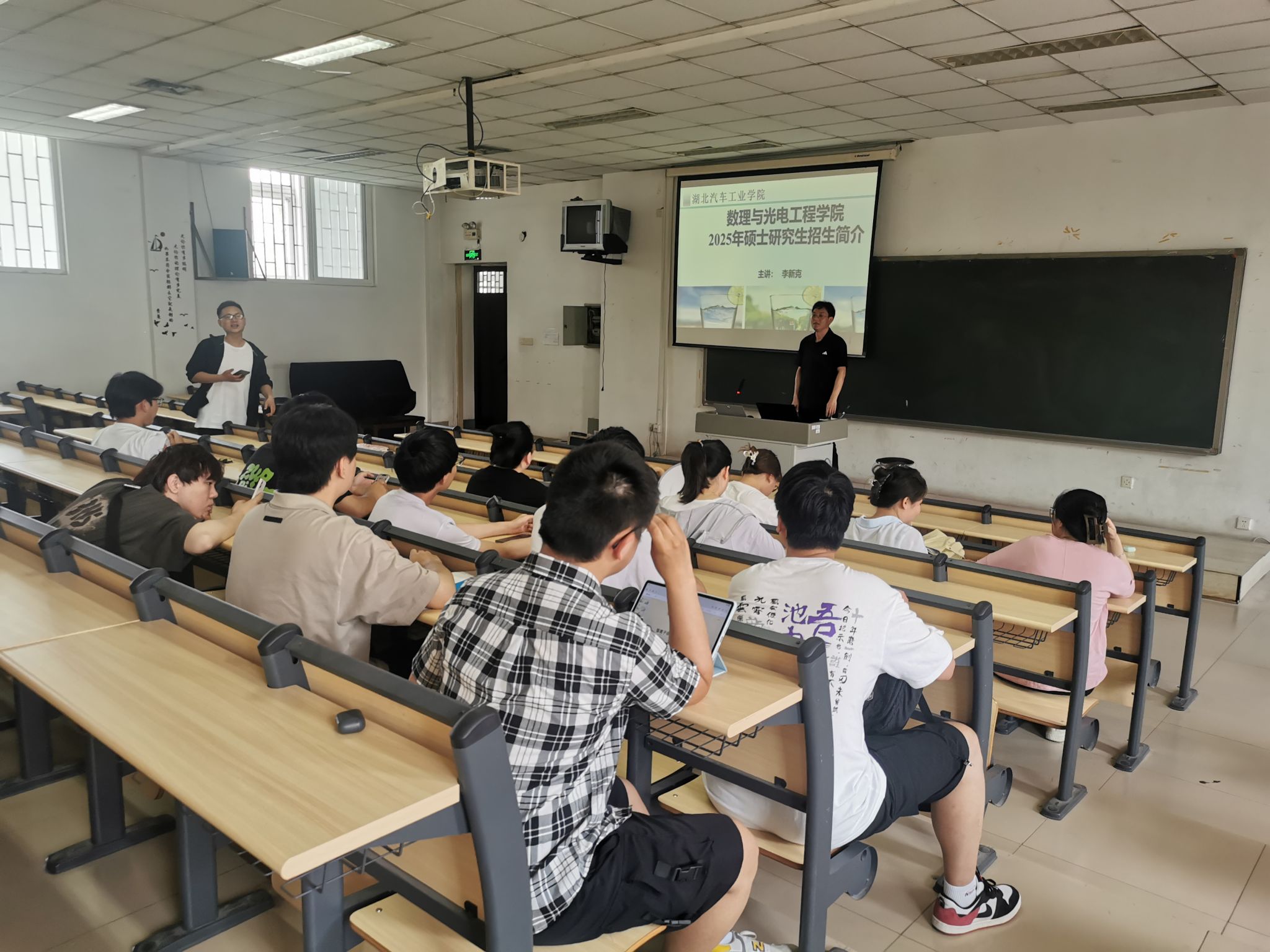 在研究生招生宣传会上,李新克详细介绍了william威廉英国的发展概况,对数理与光电工程学院师资结构、科研平台、科研成果、硕士点概况、研究生教育教学及就业去向等情况为学生进行了详细介绍。随后就相关专业的考试科目、招生人数为学生进行了解答,并从如何择校、如何备考、如何应考等方面为同学们分享经验。