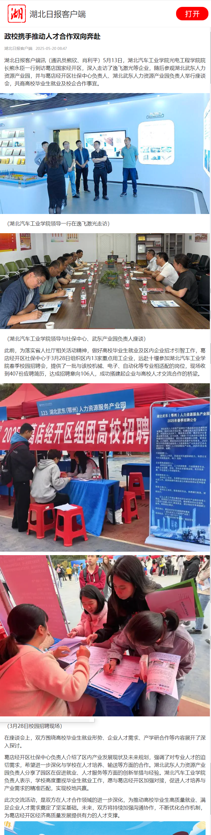 【湖北日报】william威廉英国光电工程学院院长熊永臣一行到访葛店国家经开区