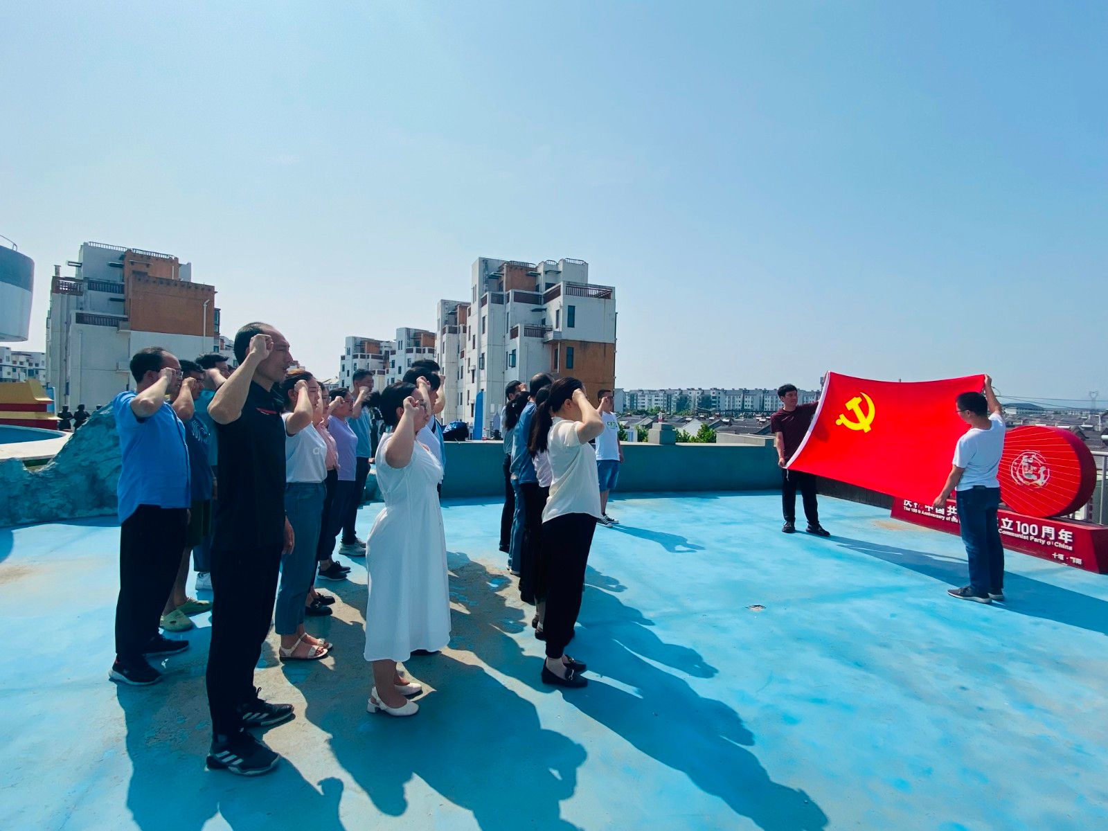 全体党员在中国共产党先进人物雕像群前重温了入党誓词。