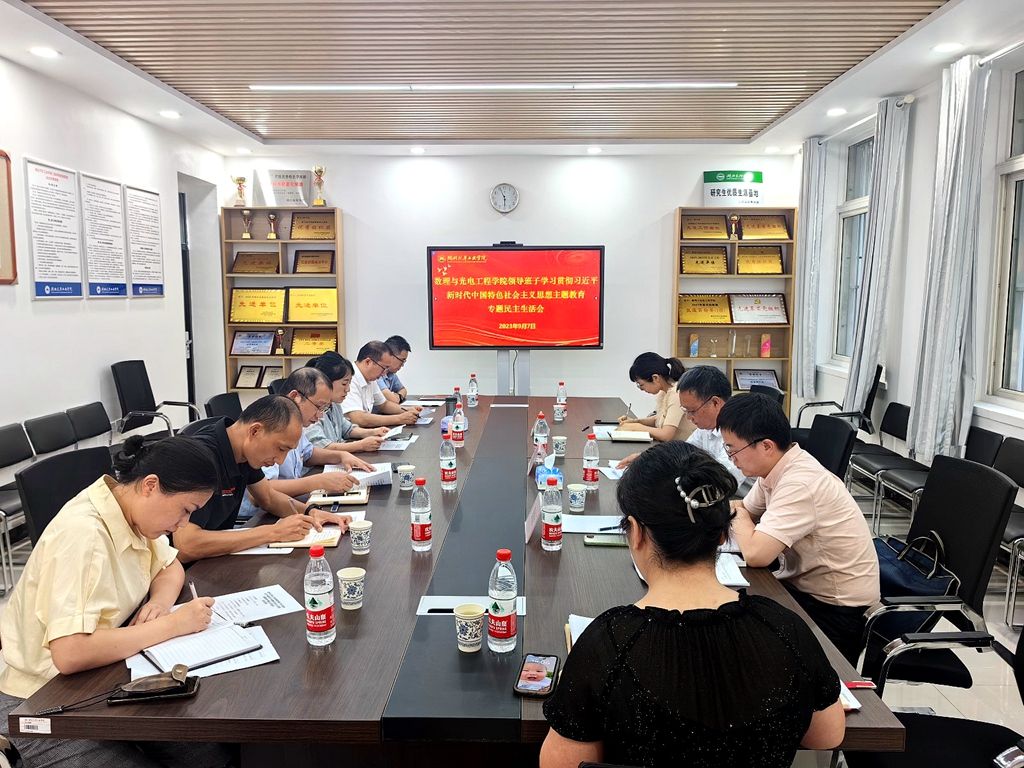 9月7日晚,数理与光电工程学院分党委在第一教学楼1126会议室召开领导班子学习贯彻习近平新时代中国特色社会主义思想主题教育专题民主生活会,学校第八督导组组长王镇到会指导。数理与光电工程学院领导班子成员参加会议,会议由分党委书记张默主持。