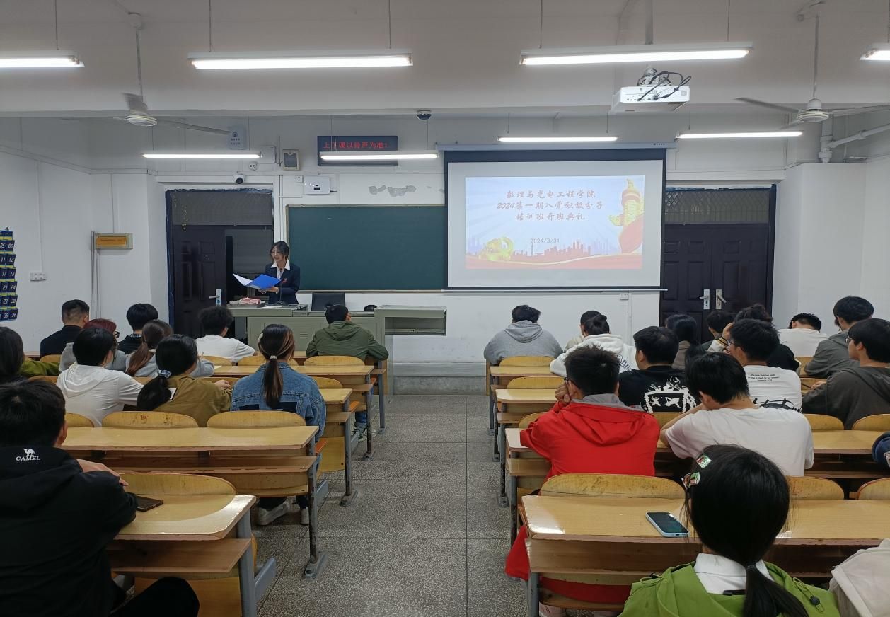 4月1日,数理与光电工程学院分党委在1205教室举行2024年第一期入党积极分子培训班开班典礼。