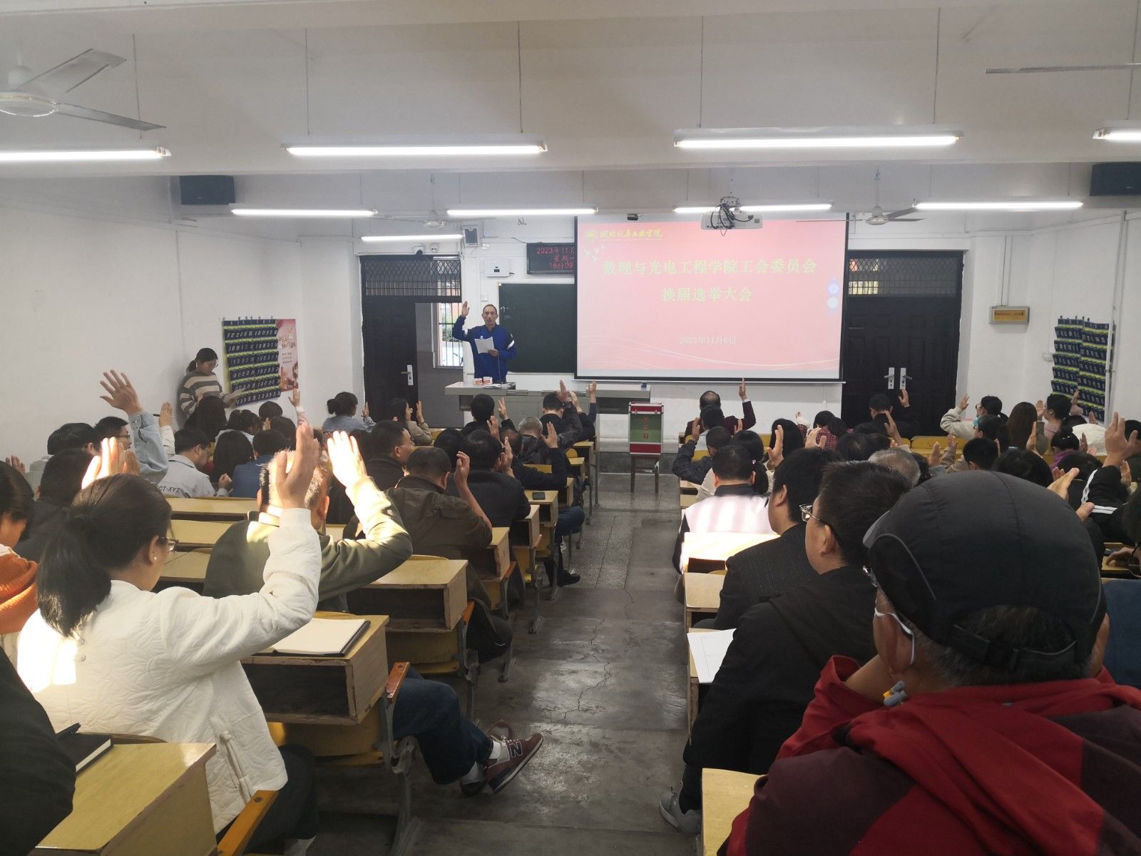11月6日下午,数理与光电工程学院在1103教室召开工会换届选举大会,学院全体工会会员参加了本次大会,大会由学院分党委副书记张朋刚主持。