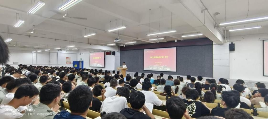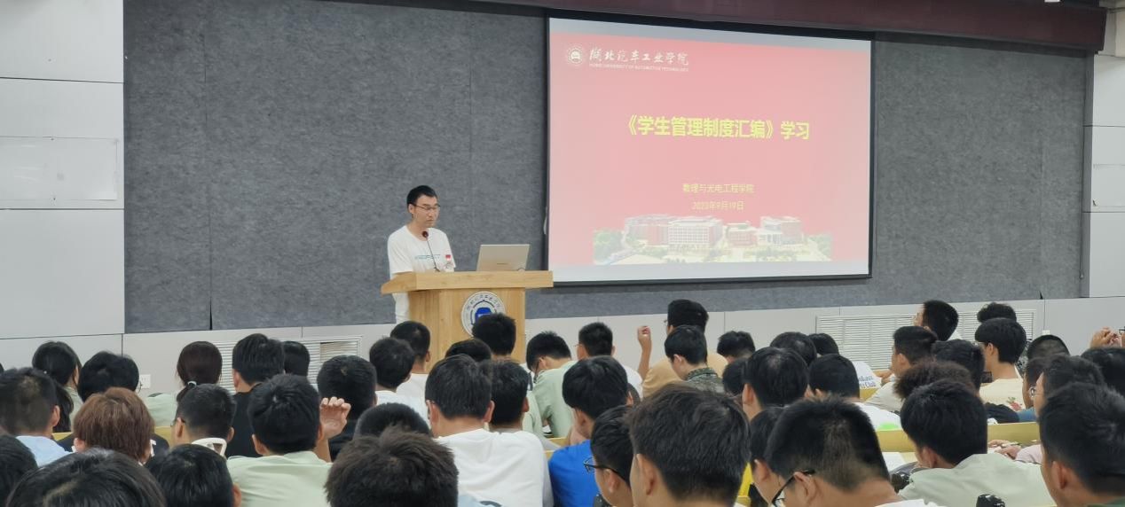 为使新生进一步熟悉适应大学学习生活,了解学校规章制度,增强学生的自律意识和纪律观念。2023年9月19日数理与光电工程学院在6113教室组织2023级新生开展《学生管理制度汇编》学习。辅导员卢旭作辅导学习,数理与光电工程学院2023级全体新生参与。