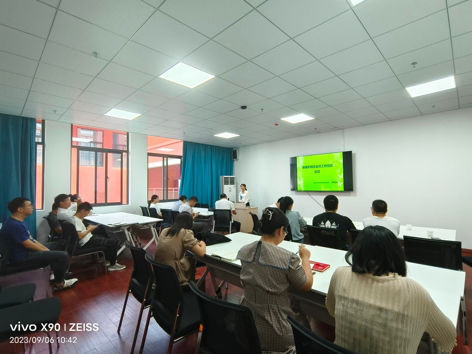 (本网讯)为提升新生班主任综合素质及能力,做好2023级新生迎新工作,9月6日上午,数理与光电工程学院开展2023级新生班主任培训会,分党委书记书记张默、副书记张朋刚、全体辅导员和13名新生班主任参加会议,张朋刚主持本次会议。