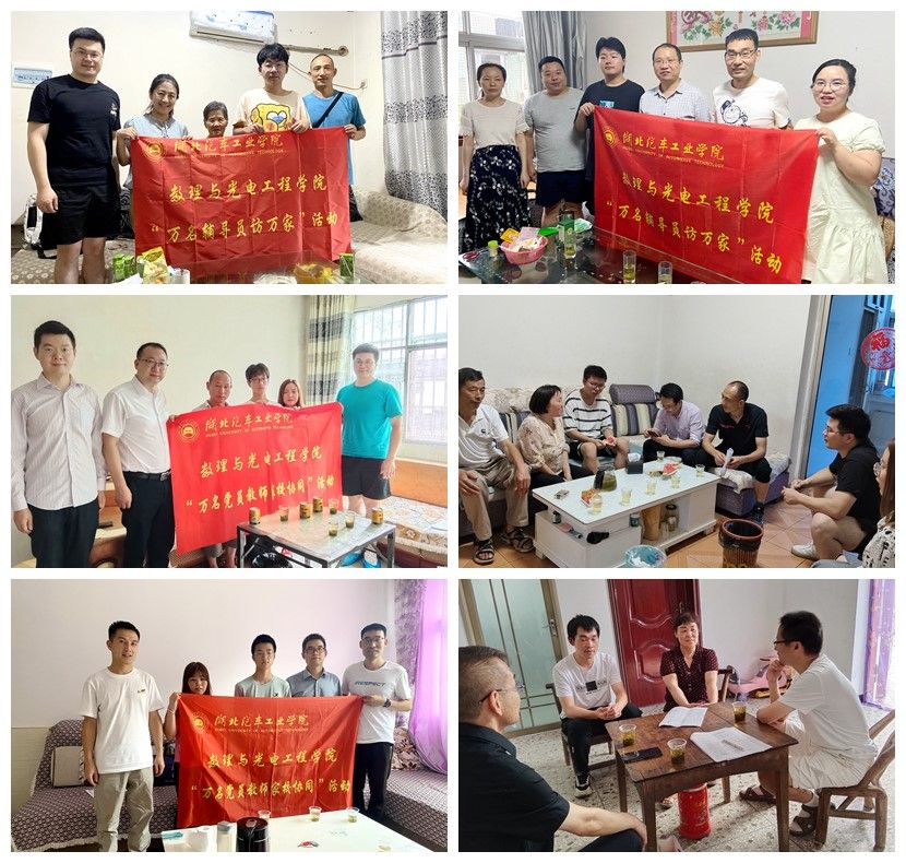(本网讯)数理与光电工程学院于7月12日—28日,赴张湾区、茅箭区、郧阳区、丹江口市等地开展2023年暑期家访活动。学院分党委书记张默、院长李建、科发院副院长熊永臣,学院副院长胡政发、张传坤,分党委副书记张朋刚及辅导员、班主任对6名家庭经济困难学生进行了走访慰问,酷暑之下为经济困难学生和家庭送去了学校学院的关心和关爱。