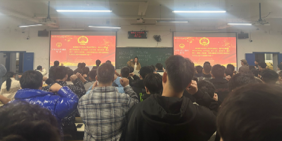 最后,辅导员和团支书带领全体学生进行了庄重而严肃的宪法宣誓仪式,进一步坚定了同学们维护宪法的信心与决心。
