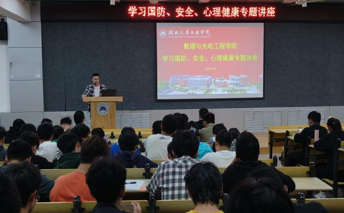 为增强学生的国防观念,保障学生的财产安全,提高大学生心理健康意识,加强校园心理健康知识宣传,塑造健康向上的积极品质。数理与光电工程学院于9月24日晚在6113、6211教室开展学习国防,安全,心理健康教育。数理与光电工程学院辅导员卢旭、秦运来主持,全体21级、22级学生参加。
