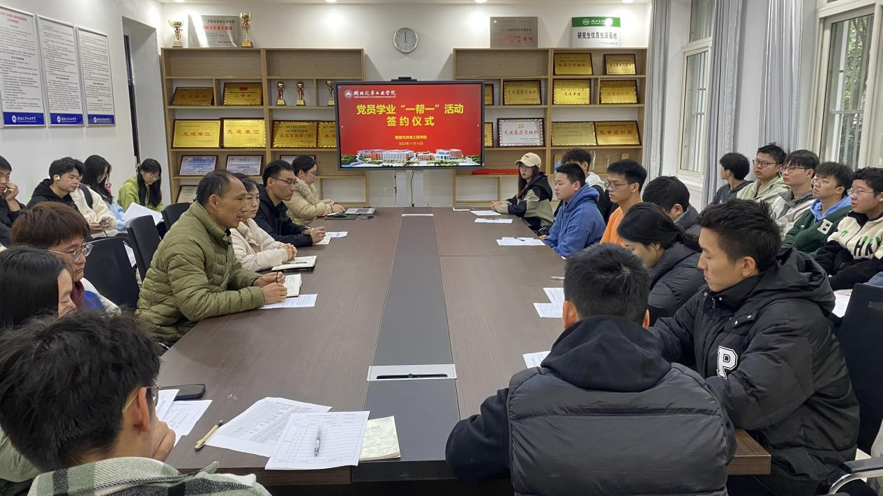在1126会议室举行了党员学业“一帮一”签约仪式,分党委书记张默、全体辅导员、班主任代表和学院党员帮扶人、帮扶对象参加了签约仪式,活动由副书记张朋刚主持。