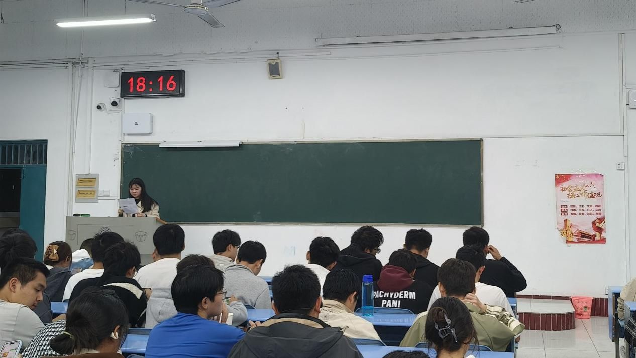 本网讯(文/张智航)11月10日,为加强学生管理,促进学风建设,提高教育教学质量,同时增强学生的安全意识和健康意识。数理与光电工程学院在第二教学楼开展第十周晚点名主题班会,此次会议由各位辅导员的主持,全院同学参加。