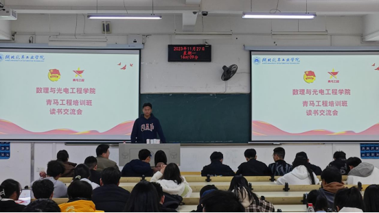 为提高学院青马工程培训班学员的政治理论修养,增强研读经典能力,扎实推进青马工程走深走实,11月27日数理与光电工程学院在6111教室举行了“青马工程培训班读书交流会”,校团委办公室主任鲍洁、数理与光电工程学院学工办主任卢旭、分团委书记李萌,辅导员秦运来和全体青马工程成员参加活动。活动由数理与光电工程学院分团委学生会秘书长周婧主持。