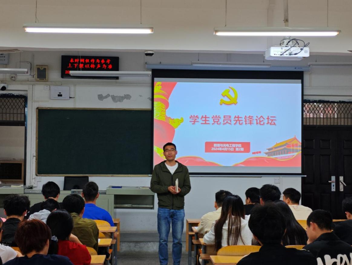 为发挥党员先锋模范作用,宣扬党员先锋事迹,引导入党积极分子们汲取榜样力量、树立示范标杆。4月20日,数理与光电工程学院在一教1205教室开展了第二期党员先锋论坛活动,数理与光电工程学院学生第一党支部书记卢旭、40多名入党积极分子及“青马工程”培训班学员共同参加。