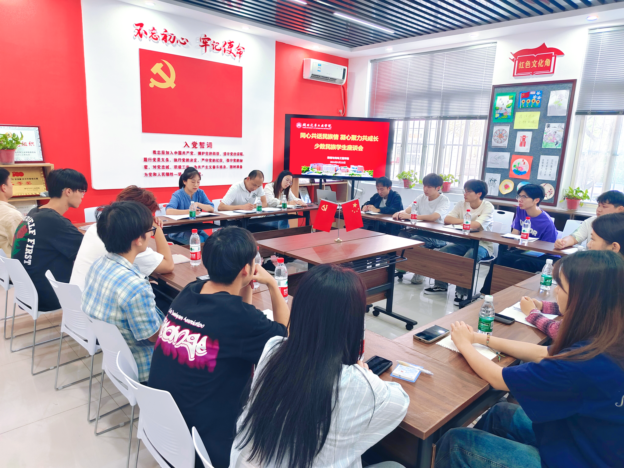 为深入学习贯彻党的二十大精神,铸牢中华民族共同体意识,进一步关心少数民族学生学习、生活情况,助力少数民族学生成长成才,9月23日下午,数理与光电工程学院在1104党团活动室举行以“同心共话民族情,凝心聚力共成长”为主题的少数民族学生座谈会,数理与光电工程学院分党委书记张默、分团委副书记李萌,辅导员郭煜及少数民族学生代表参加了会议,会议由分党委副书记张朋刚主持。