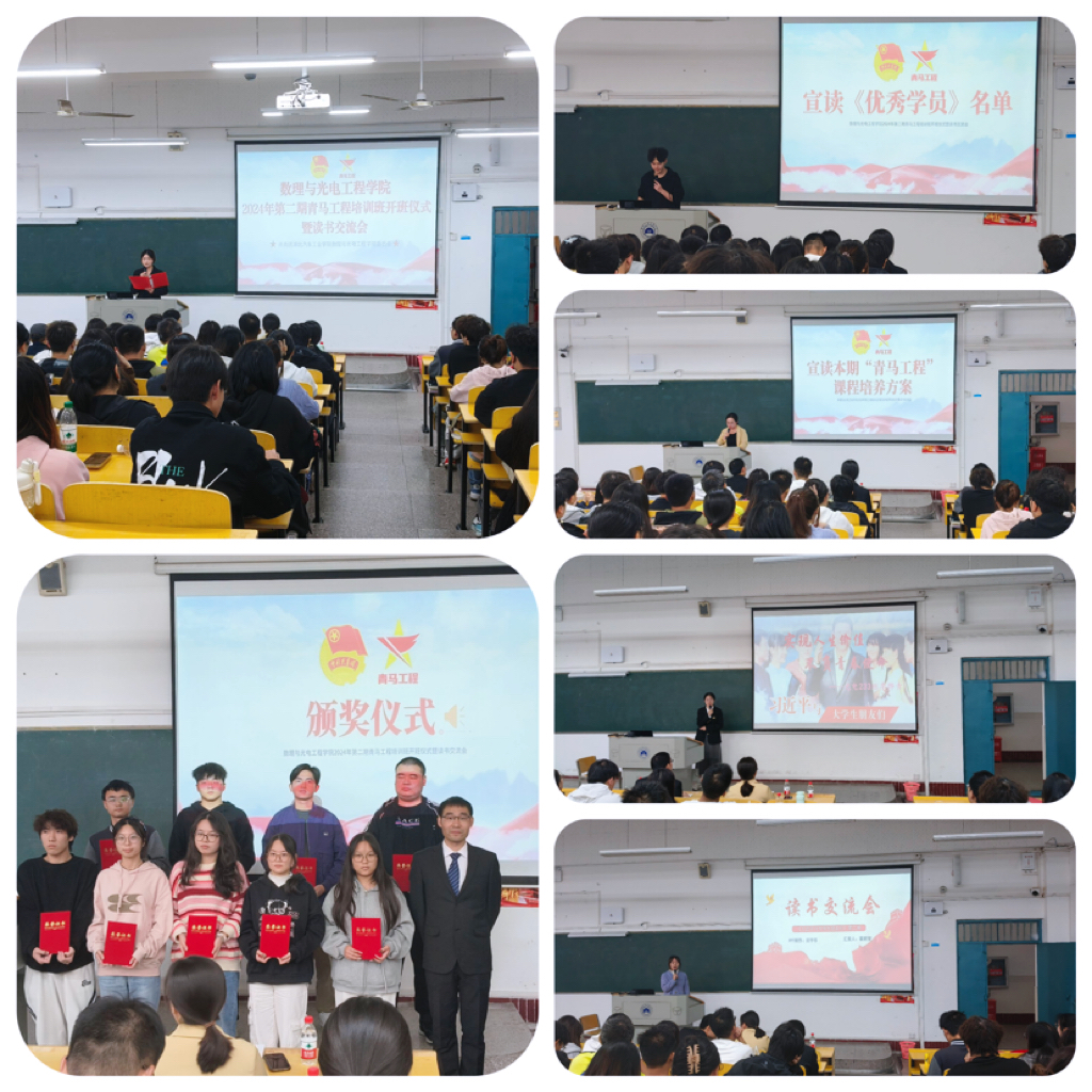 为培养一批信仰坚定、能力突出、素质优良、作风过硬的青年政治骨干,进一步激发同学们的爱国情怀和奋斗精神。111日,数理与光电工程学院在2101教室隆重举行了2024年第二期“青年马克思主义者培养工程”培训开班仪式暨读书分享交流会,学工办主任卢旭、分团委副书记李萌、全体辅导员及80余名青马工程学员参加了此次培训。