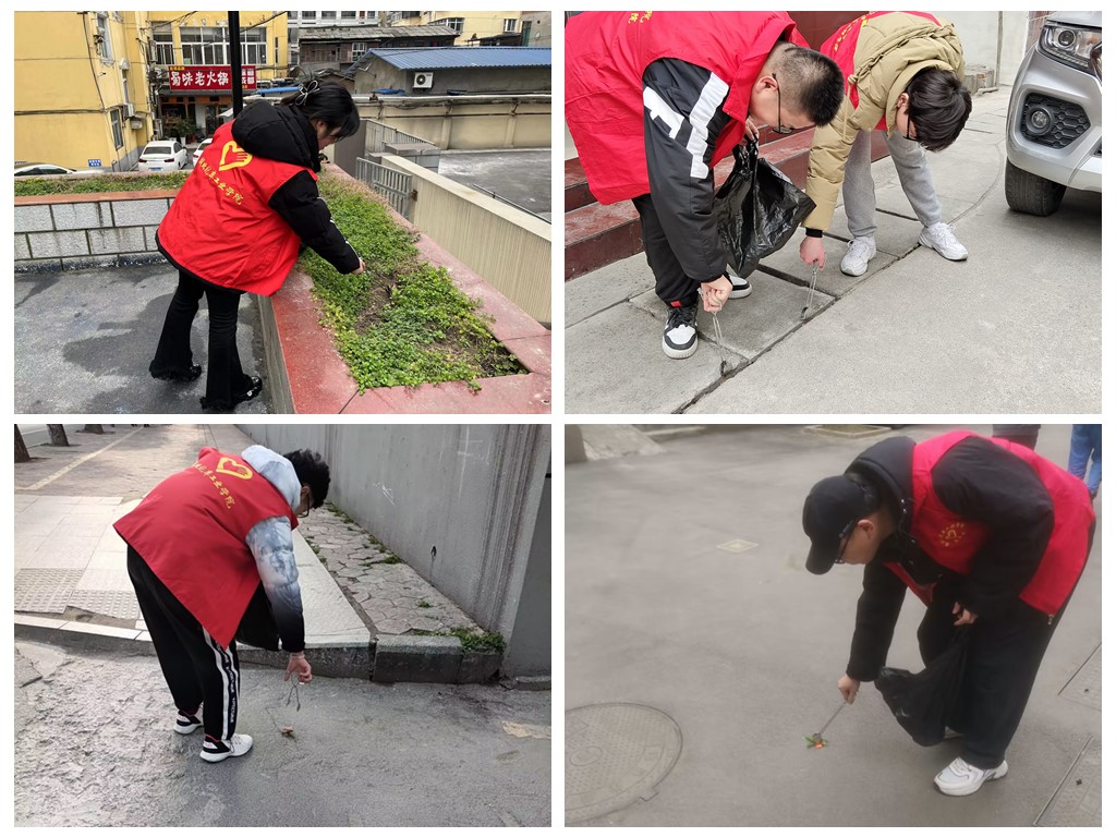 (本网讯)为净化城市环境,建设美丽十堰,2月16日,数理与光电工程学院师生赴周家沟社区开展创建文明城市志愿服务活动,教工党员、学生党员、青年团员等50名志愿者共同参与本次活动。