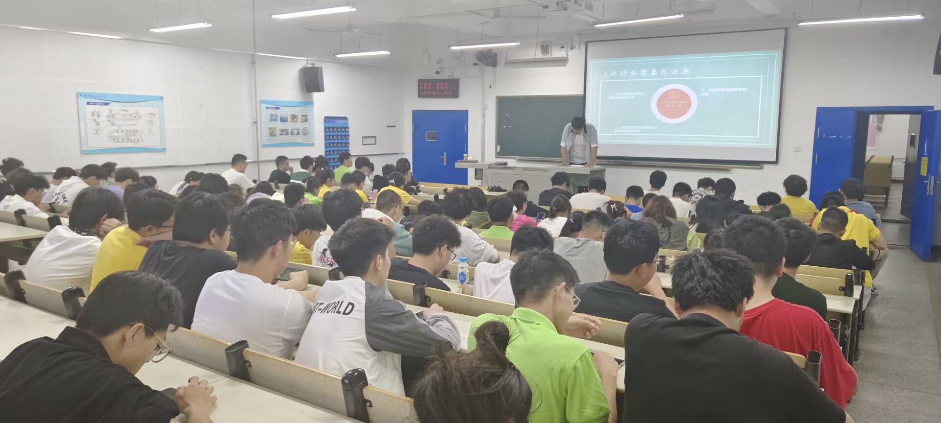民法典相当于处理民事法律规律的一本百科全书,其中包含了各种各类的民事纠纷处理的法律依据。在民法科学化,全面深化改革中具有重要的地位和作用。为宣传学习民法典,特别是突出习近平总书记关于民法典的重要指示批示精神。数理与光电工程学院于5月28日下午6点在6211教室举办了“典”亮校园,伴民同行的法制宣传教育活动。