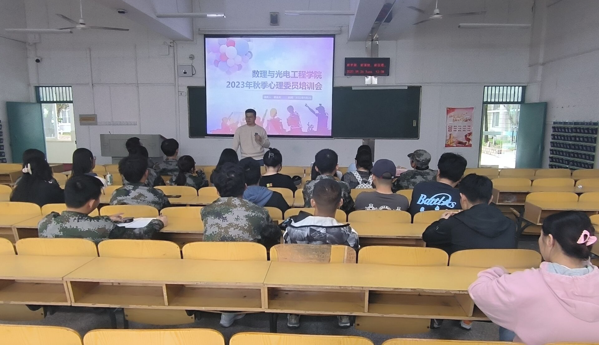 为了提升数理与光电工程学院心理健康工作质量,促进学生心理健康教育工作的顺利开展,进一步明确各班心理委员的工作职责,加强心理委员的工作认知,增强心理委员心理健康知识,了解情绪调节的方法。9月26日,数理与光电工程学院在2102教室开展了秋季心理委员培训会,本次培训由学院心理辅导员秦运来主持。