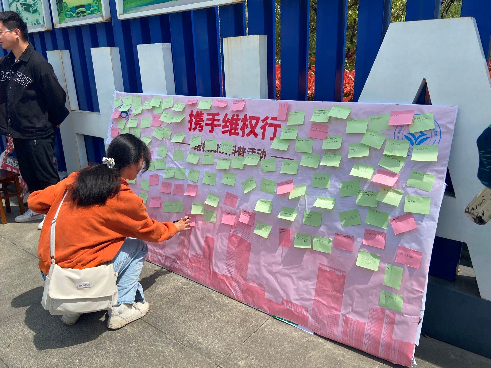 活动现场,同学们纷纷驻足用便利贴写下了自己的意见和建议。经过工作人员汇总,同学们的意见和建议涵盖了学习资源、宿舍设施、网络建设等多个方面。活动结束后,权益部工作人员讨论了如何让学生们的权益得到保障和落实的问题,并收集整合了所收集的权益问题,并将收集到的权益问题反馈给学院和学校相关部门。