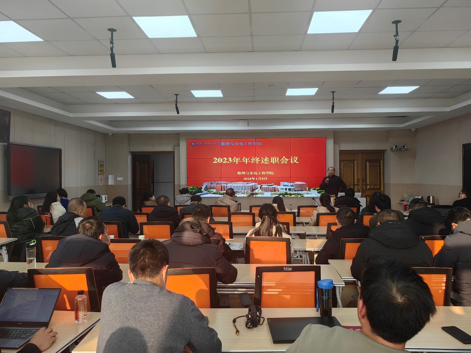 本网讯(文 汪栖如/图 吴腊珍)为全面总结梳理2023年工作,推动2024年工作迈上新台阶。1月8日,数理与光电工程学院在一教1305组织召开专任教师2023年度述职会议,全体教职工参加会议。会议由院长李建主持。