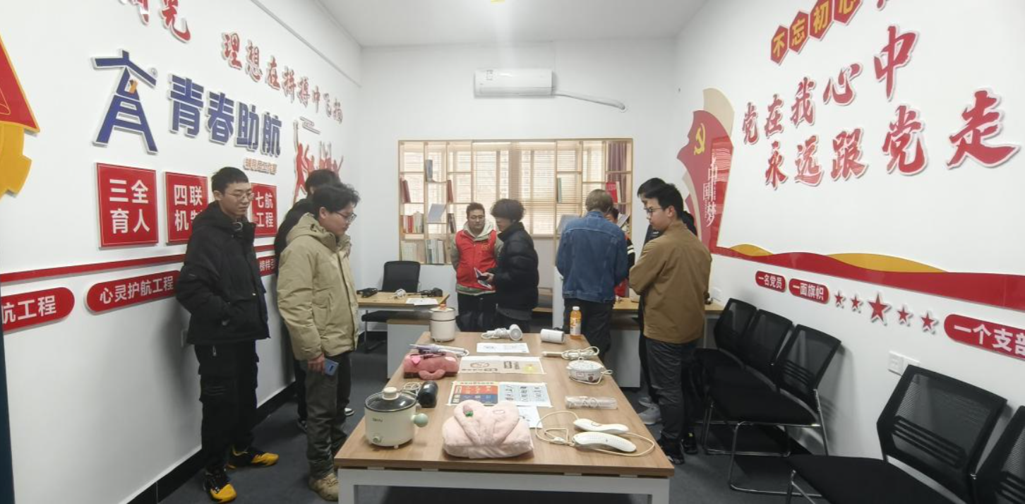 展览现场共设置两大展区,陈列电热水壶、电热毯、电吹风等十余类宿舍常见违规电器,并配以醒目标识及图文说明,直观呈现违规电器的火灾风险。每个展品旁均设置典型案例展板,通过还原真实事故场景,揭示违规用电的严重后果。此外,活动特别设置实践互动环节,通过趣味问答、模拟操作等形式,引导学生掌握安全用电技能。现场发放的《学生宿舍管理制度汇编》手册,系统梳理了插座负荷标准、电器选购规范等实用知识。 展区配备专业讲解员全程答疑解惑,确保信息传递精准有效。