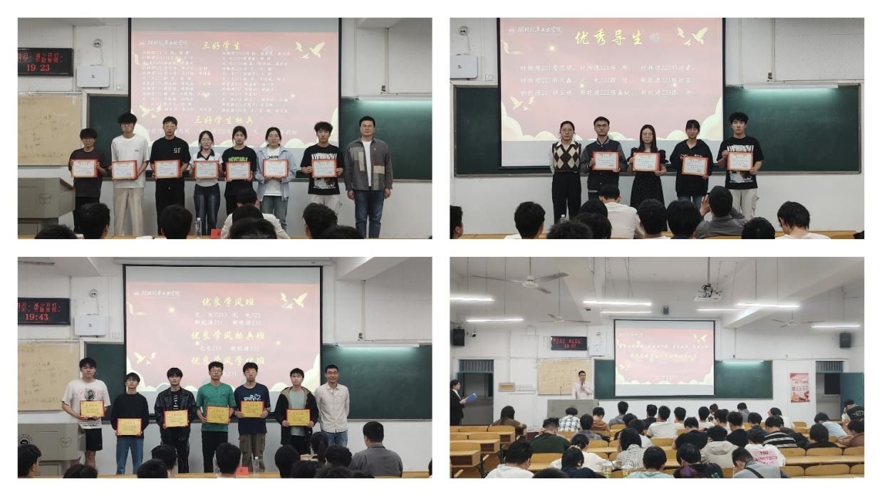 在学习优秀事迹分享活动环节中,“三好学生”获得者郑君祥、余熳熳以学生工作、志愿服务与学科竞赛三线并行的经历诠释“奉献中的初心坚守”;“三好学生标兵”获得者李毅翔以“卓越源于持续奋斗”,鼓励学弟学妹在专业学习中勇攀高峰;“优秀导生”颜恺获得者从服务者视角出发,分享了陪伴新生成长、守护宿舍安全的暖心故事,用责任与热爱诠释学生骨干的担当;“优良学风学优班”代表李晨阳、“优良学风标兵班”代表杨志广、王乐等分享了通过“班级公约制定”“科研小组协作”“一对一结对互助”等模式打造学习共同体的成功经验,充分展现集体奋进的精神风貌。