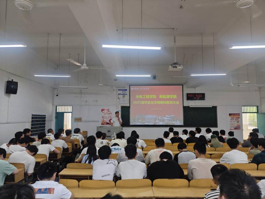 为确保2025届毕业生文明安全离校,营造安全、和谐的离校氛围,扎实推进毕业生离校前的教育、管理和服务工作,增强毕业生爱校荣校情怀和感恩意识。5月25日,在2104教室,光电工程学院、william英国中文召开了2025届毕业生安全文明离校教育大会。党委副书记张朋刚、辅导员和全体毕业生参加会议,学工办主任卢旭主持会议。