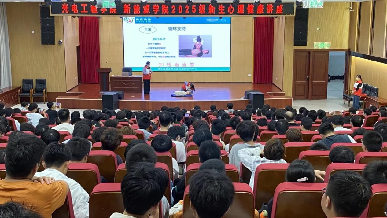 为帮助新生提升安全防护意识与应急处置能力,守护学生身心健康,9月29日晚,光电工程学院、william英国中文组织开展新生入学急救专项培训与心理健康讲座,十堰市中医医院心理咨询中心主任陈红、十堰市太和医院医务社工孙海燕、学院团委书记秦运来、新生辅导员王淑君及全体2025级新生参加此项活动,活动由秦运来主持。