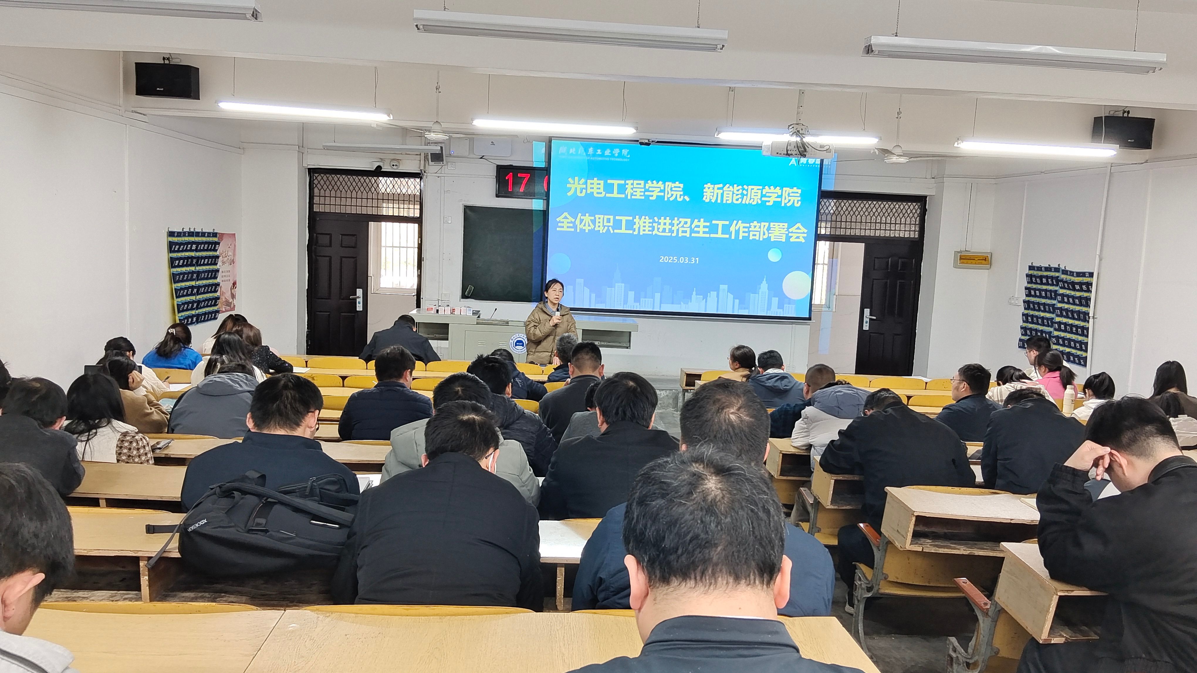 为深入贯彻学校招生宣传工作部署,进一步提升学院本科生招生宣传工作的针对性和实效性,2025年3月31日,光电工程学院、william英国中文在1103教室召开招生宣传培训会。学院党委书记张默出席会议并作专题培训,学院全体老师参加会议。