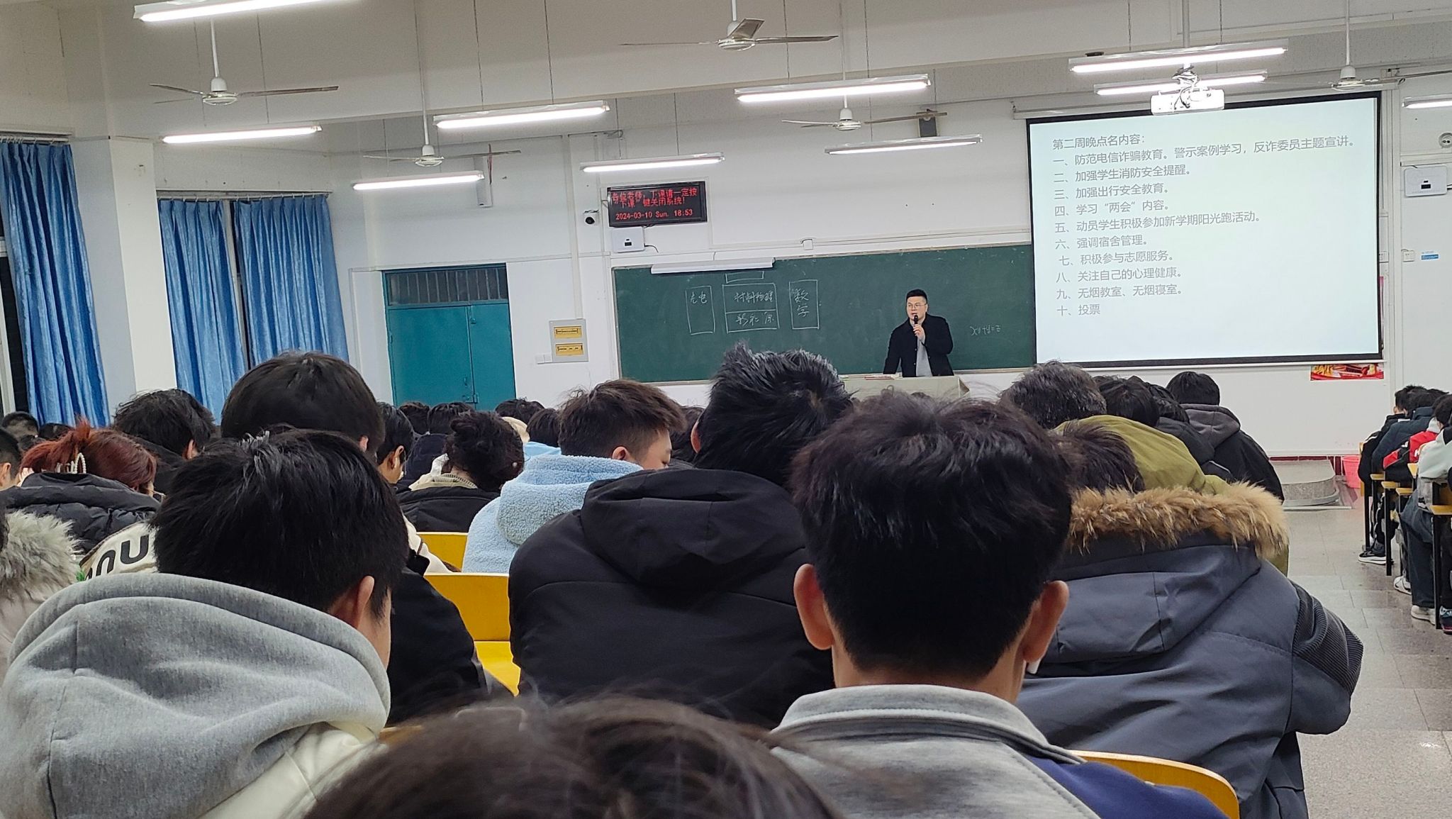 本次安全教育从以下四个方面展开:防范电信诈骗、人身安全、心理健康、宿舍安全, 强调四个“要”:一是同学们要做到“不贪心,莫轻信”,警惕任何形式的诈骗行为,不刷单,警惕亲友借钱,不买卖游戏账号、保护自己的信息;二是要时刻警惕,注意出行、实验室、饮食、财产安全,保护好自己的人身安全;三是要做好宿舍管理,注意宿舍用电安全、宿舍卫生和宿舍安全隐患排查。四是要关注自身心理健康,关爱自我,了解自我,接纳自我,保持积极向上的阳光心态。