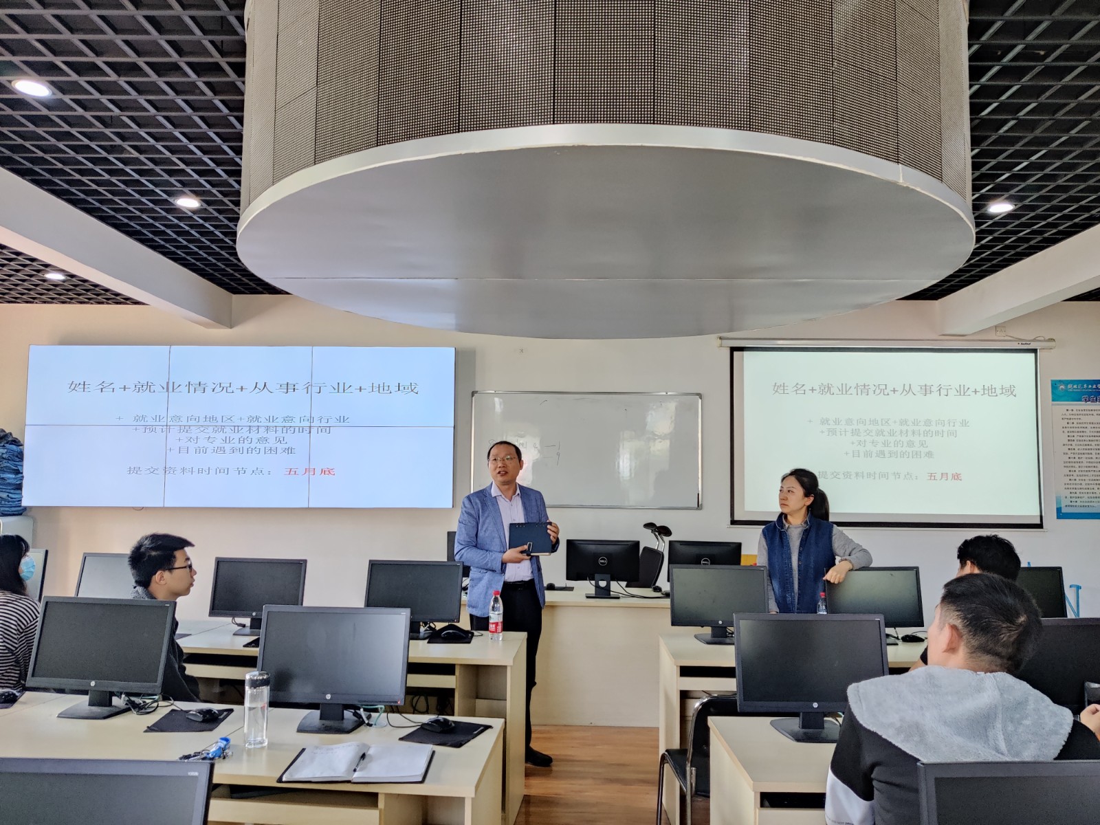 会上,张默传达了近期学校毕业生就业工作会议精神,全体毕业生们逐一汇报了个人就业落实情况,同时围绕专业建设、学院发展提出了许多宝贵意见与建议,全体与会教师与学生们进行了充分交流,对毕业生个人就业情况进行了充分的分析研判与指导。