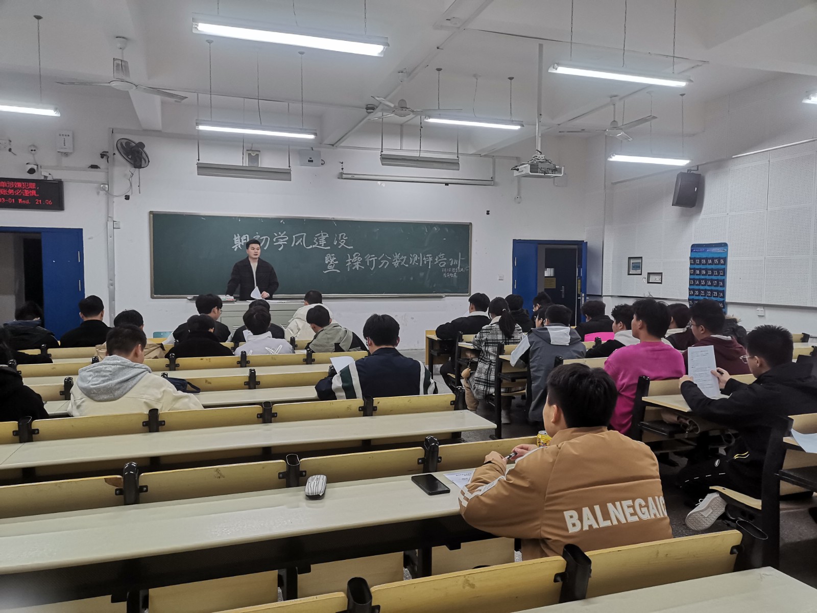 学生会副主席张锏对开学以来班委工作中存在的问题提出了改进意见,并分别从学风建设、校园安全、请假制度、寝室查寝、防范网络电信诈骗、操行成绩评定等六个方面对同学们进行了培训。学习部部长黄琳和宋子超与班委们交流了操行成绩评定过程中常见的问题和需要注意的事项,希望班委及时提醒班级同学积极参加第二课堂活动与学科竞赛,努力提高操行成绩的同时,提升自身综合能力。