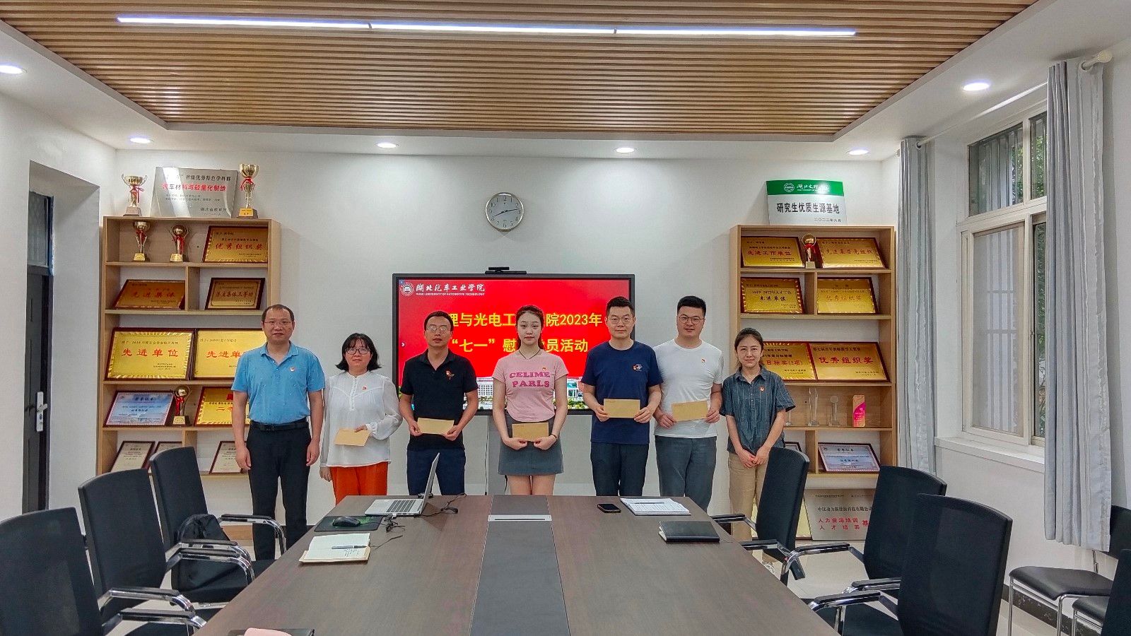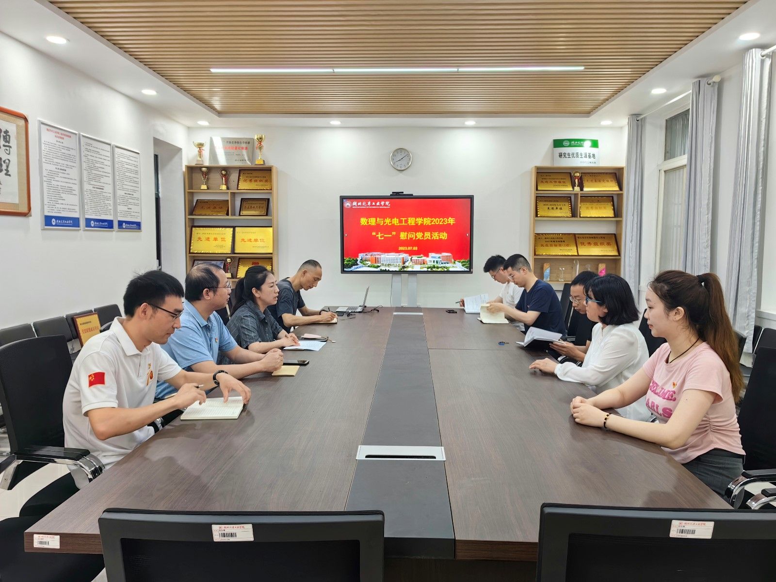 7月3日上午,数理与光电工程学院在第一教学楼1126会议室开展了“七一”慰问党员活动,分党委书记张默、院长李建、分党委副书记张朋刚及党员慰问对象参加活动。
