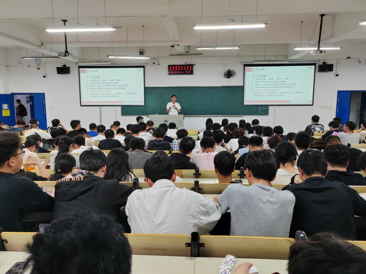 (本网讯)5月14日晚6时,数理与光电工程学院2023年暑期社会实践培训会在6211教室举行。学院学工办主任兼分团委书记李童、辅导员卢旭、秦运来以及2022级全体本科生参加了此次动员大会。