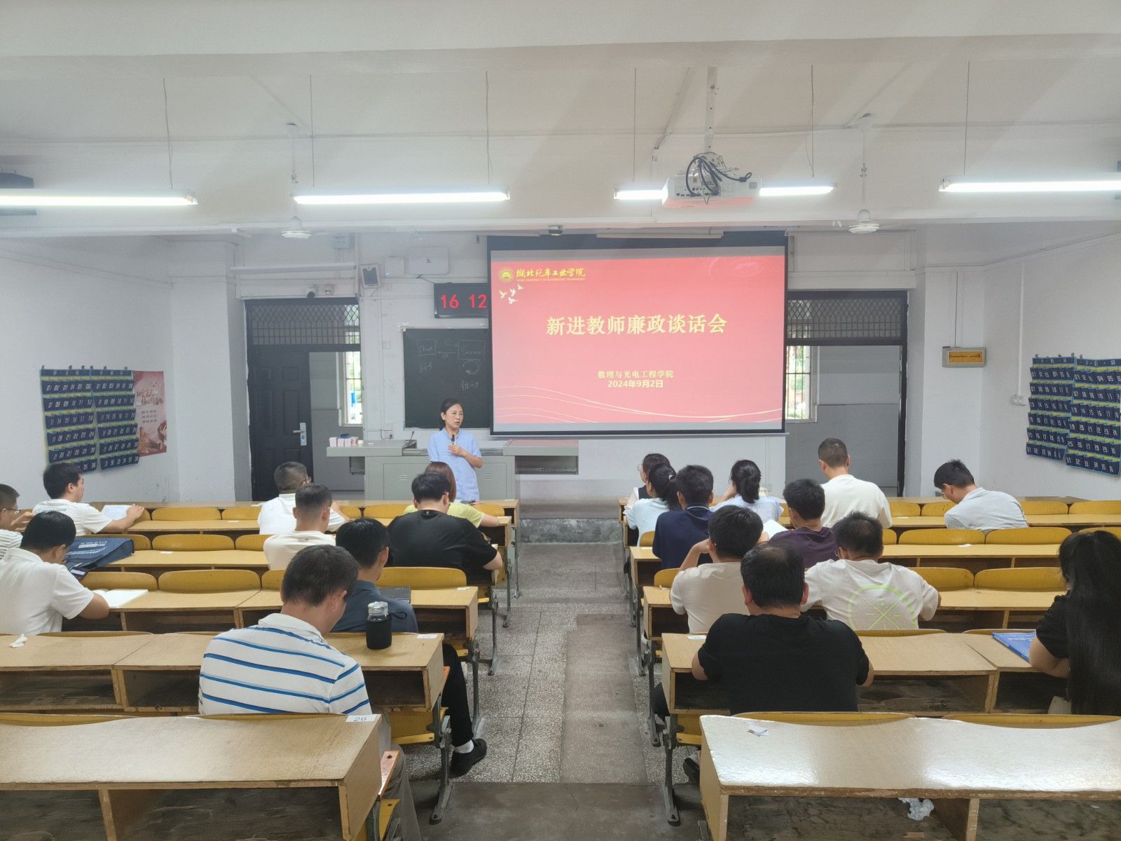 9月2日下午,数理与光电工程学院在第一教学楼1103教室召开了新进教师廉政谈话会,分党委书记张默与2023年以来新入职的20余名教师进行了集中谈话。会议由分党委副书记张朋刚主持。