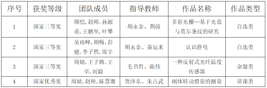 近日,第十届全国大学生物理实验竞赛(创新)总决赛在北京航空航天大学沙河校区举行。本届赛事共有来自全国31个省市自治区以及香港、澳门地区的667所高校、2755支队伍、14700余名师生参加。经过前期的预选赛阶段,280所高校548支优秀代表队脱颖而出,共计1400余名师生进入到现场决赛环节。经过激烈角逐,我校共获全国二等奖1项,三等奖2项,优秀奖1项,获奖层次和数量位于全国高校前列。