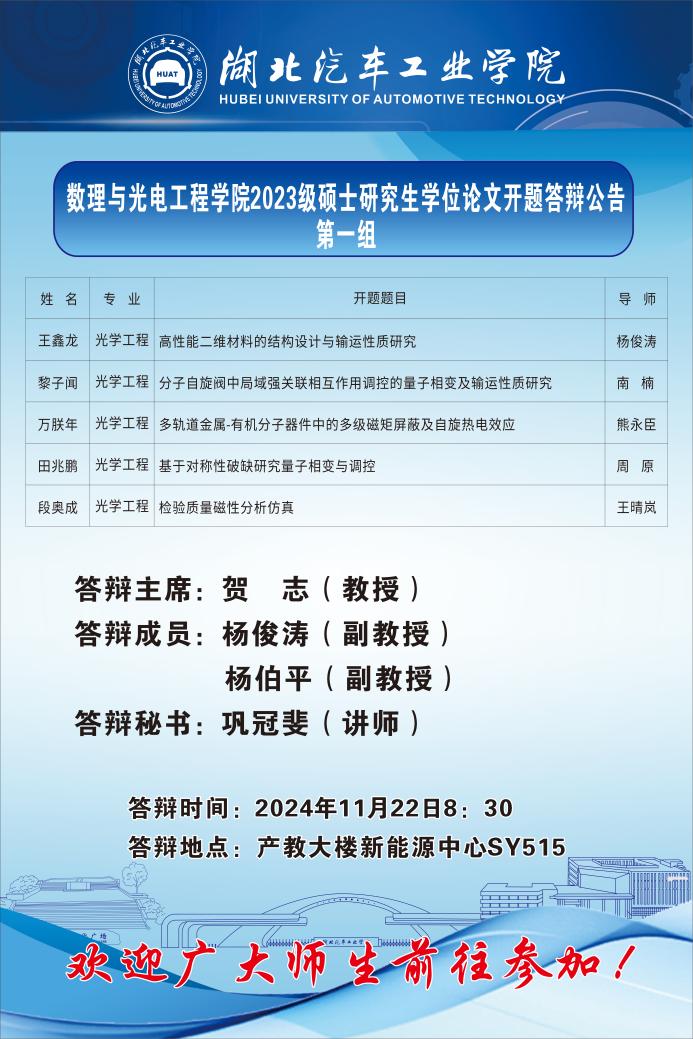 根据国务院学位委员会、教育部《关于进一步严格规范学位与研究生教育质量管理的若干意见》(学位[2020]19号)的要求,以及学校《关于做好2023级硕士研究生学位论文开题工作的通知》的要求,结合《william威廉英国研究生学位论文开题报告管理办法》,现将数理与光电工程学院2023级硕士研究生学位论文开题答辩工作安排公告如下: