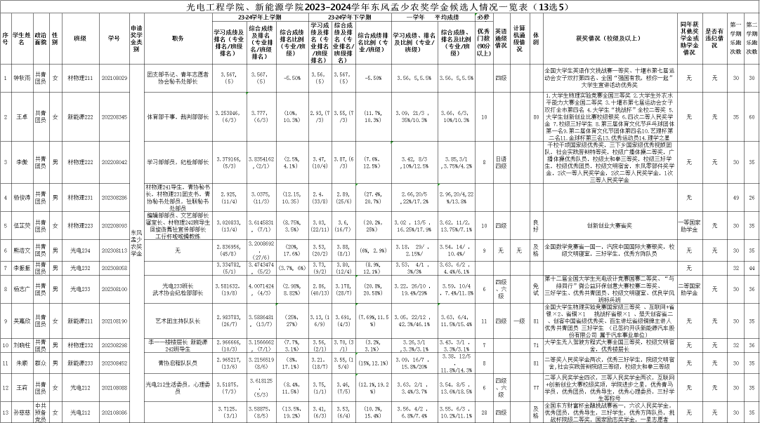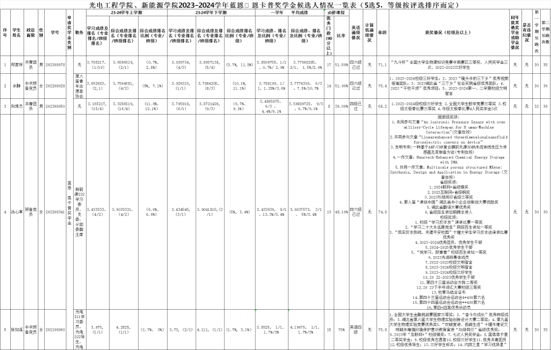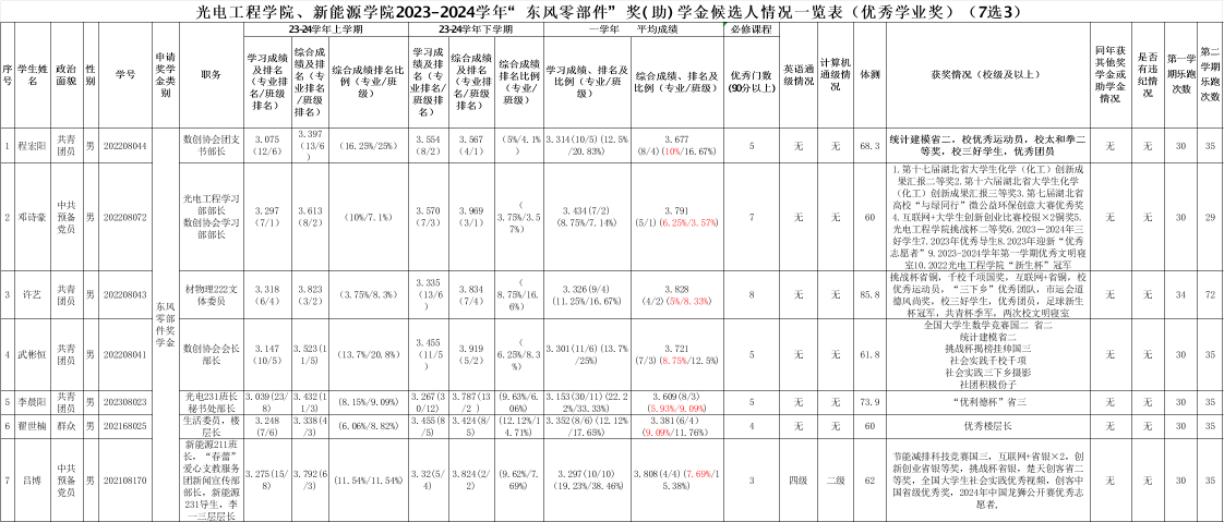 光电工程学院、william英国中文2023-2024学年社会奖学金评选初审候选人公示如下: